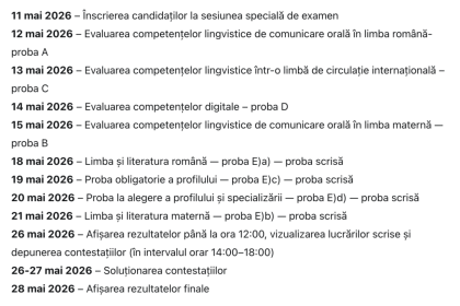 invatamant Ministerul Educației a publicat oficial calendarul pentru sesiunea specială a examenului de Bacalaureat 2026, destinată absolvenților de liceu implicați…