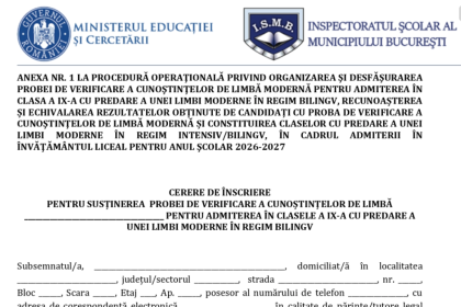 Admitere liceu 2026: înscrierea la testarea la limba străină începe în mai. Model de cerere publicat de ISMB