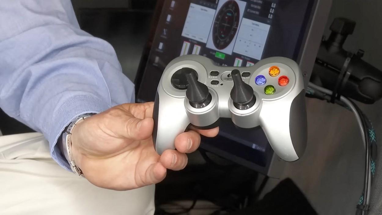 Submersibilul este condus cu o consolă ca de jocuri, conectată la navă prin bluetooth.