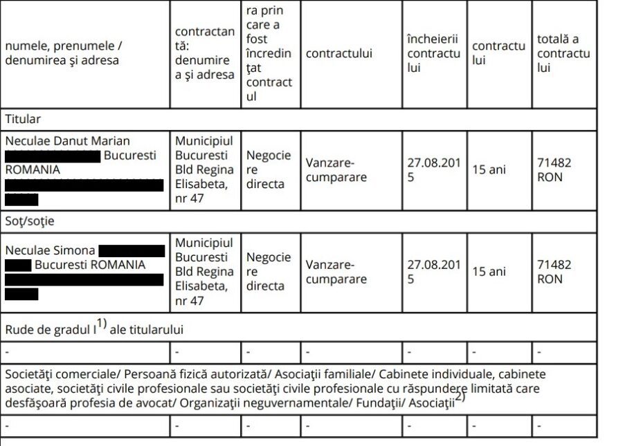 Familia actualului prefect de Ilfov are două contracte cu primăria general a Capitalei, contracte semnate pe 27 august 2015, cu o lună înainte de arestarea lui Sorin Oprescu pentru fapte de corupție. Ambele contracte au fost încheiate prin negociere directă, au o valabilitate de 15 ani și au valoarea de 71.482 de lei fiecare.
