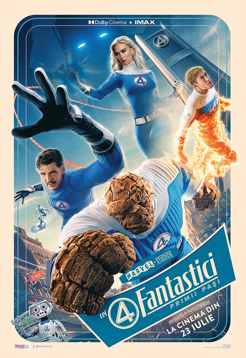 Cei 4 Fantastici: Primii Pași/ The Fantastic 4: First Steps, filmul care deschide Faza 6 a Universului Marvel, ultima din Saga Multiversului, ajunge în cinematografele din România pe 25 iulie, cu avanpremiere începând din 23 iulie, și va putea fi vizionat în formatele 2D, 3D, Dolby Atmos, IMAX 3D și 4DX 3D. Următorul titlu din serie, Avengers: Doomsday, este programat pentru lansare în decembrie anul viitor.