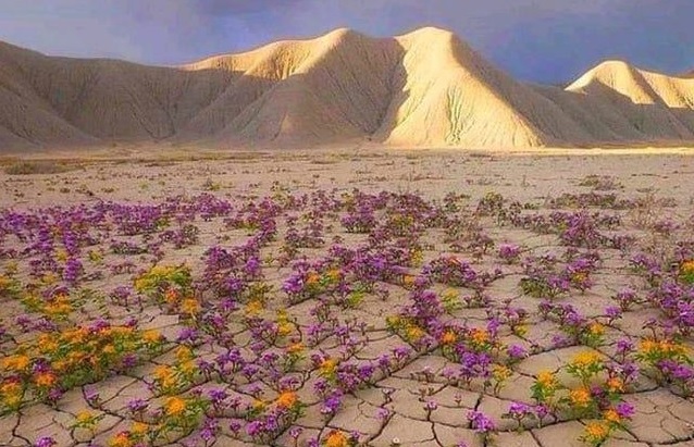 Flori albe şi violet au acoperit în ultimele zile dunele de nisip ale deșertului chilian Atacama, cel mai uscat loc de pe planetă, după ce ploile timpurii le-au făcut să răsară în mijlocul iernii australe.