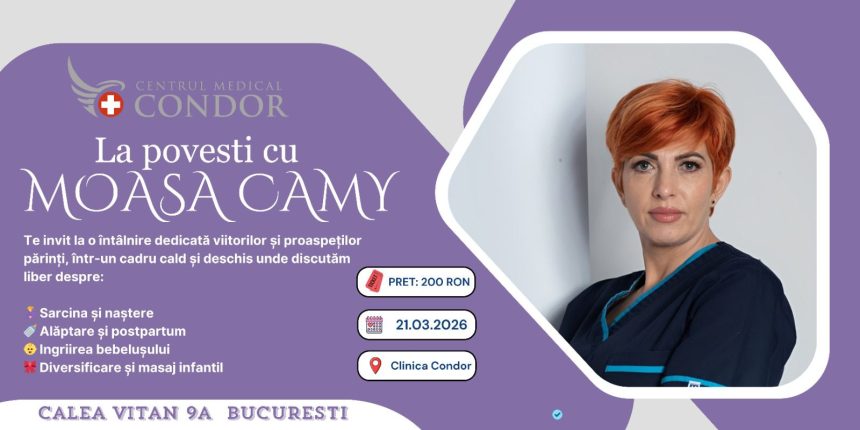 Bucureștiul găzduiește, pe 21 martie 2026, între orele 11:00 și 13:00, evenimentul „La povești cu moașa”, o întâlnire dedicată viitorilor și proaspeților părinți care își doresc informații clare, validate medical, despre sarcină, naștere și perioada postnatală. Evenimentul va avea loc la Clinica Condor și propune un format interactiv, bazat pe dialog deschis și răspunsuri aplicate la întrebările reale ale participanților.