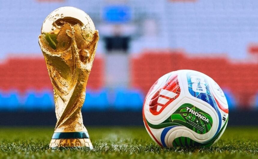 Balonul oficial, denumit „Trionda”, este fabricat de Adidas, producător german care furnizează mingile de la Cupa Mondială încă din 1970. Designul său reflectă unitatea celor trei gazde, prin culorile roșu, albastru și verde, dar și prin simboluri reprezentative: frunza de arțar pentru Canada, vulturul pentru Mexic și stelele pentru SUA, toate reunite într-un triunghi stilizat.