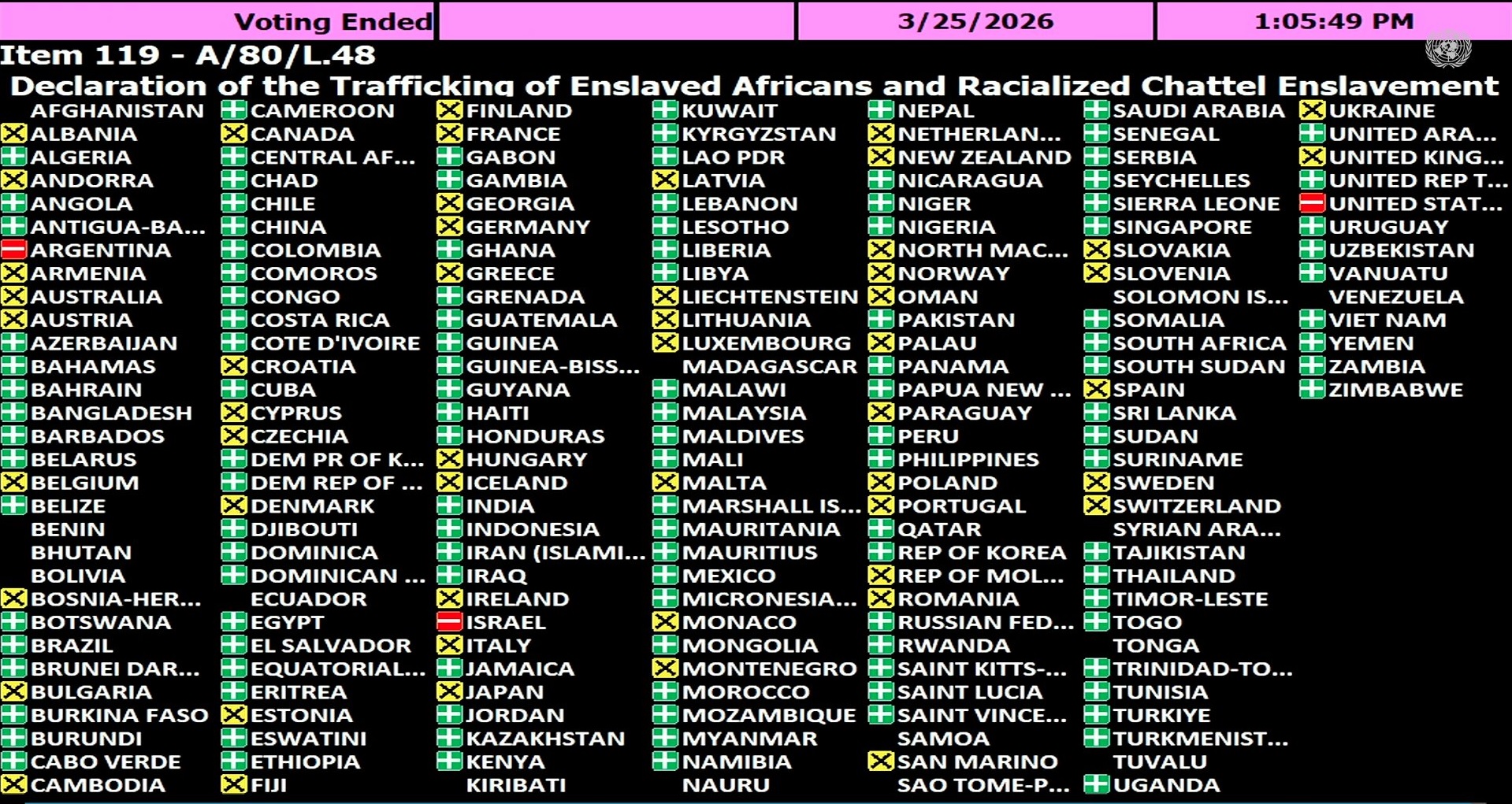Rezoluția a fost votată în Adunarea Generală a Organizației Națiunilor Unite, după o inițiativă pornită din Ghana, care speră să obțină scuze și justiție.
