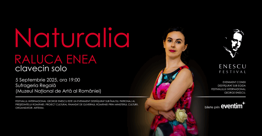 Vineri, 5 septembrie 2025, de la ora 19:00, publicul este invitat la Sufrageria Regală a Muzeului Național de Artă al României pentru a descoperi recitalul baroc „NATURALIA”, susținut de clavecinista Raluca Enea. Biletele pot fi achiziționate aici: https://tinyurl.com/NaturaliaSept2025.