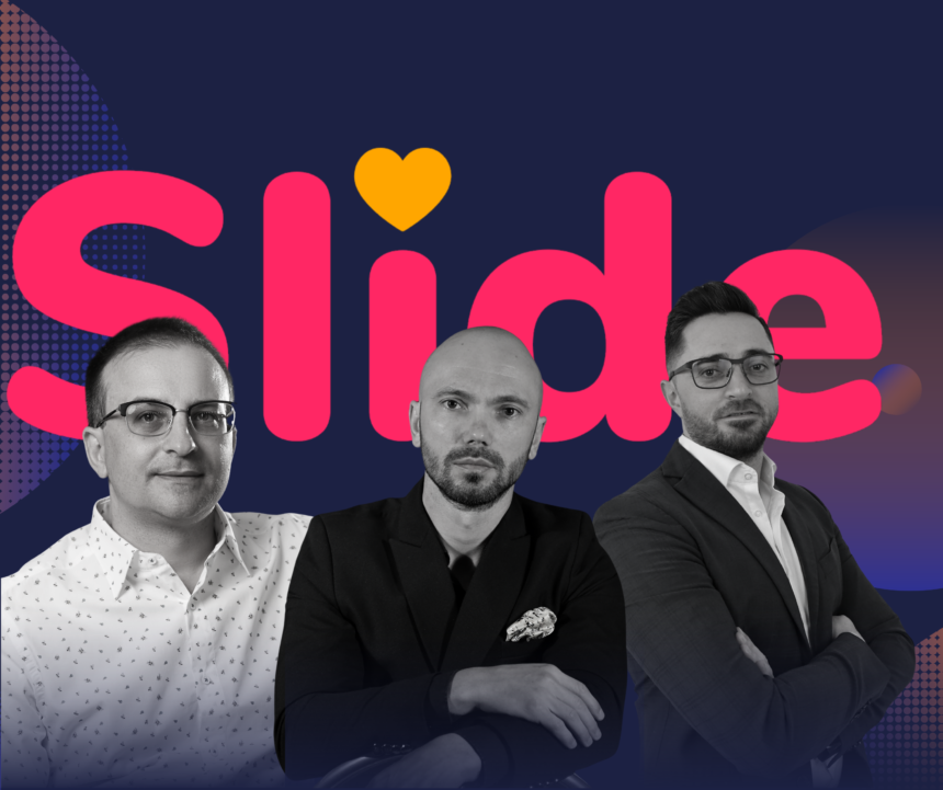 Slide, dezvoltată de o echipă de specialiști experimentați din România și condusă de o viziune ambițioasă, promite utilizatorilor din toată lumea o experiență de dating fără precedent. Investiția inițială în Slide pana la lansare este de 500.000 de euro, însă fondatorii vor investi sume suplimentare pentru extinderea la nivel international..